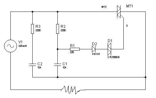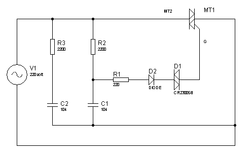 em thấy ở các mạch bình thường thì không có con D2 . trong mạch này con D2 chỉ dẫn ở 1 bán kỳ còn bán kỳ kia thì ngưng dẫn do đó mạch TRIAC chỉ mỡ tối đa là 110v (input là 220v). và nếu nối tiếp với R2 1 biến trở 50k thì mạch có thể điều chỉnh từ 0 - 110v. em phân tích như vậy đúng không các bác. mạch này xài cho động cơ có ảnh hưởng gì không ạ........ mong các bác chỉ bảo nhiều, em cám ơn nhiều ạ.