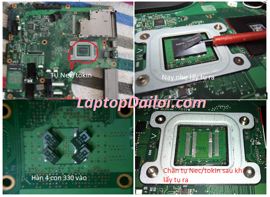 'Em đã xử lý được rồi, hay quá. Đúng là bị rỉ con tụ Nec/Tokin thật. Sau một ngày mò mẫm, thay thử bằng 1 cặp tụ 561 gỡ ở main Gigabyte chết vào, giờ máy chạy phà phà, mỗi tội tụ to quá, lắp vào kênh cả bàn phím, nhưng hơi gồ lên 1 tí thôi... hơi xấu. Đúng là pan đặc trưng của Toshiba thật. Có 1 điều như thế này, em đang thắc mắc, nếu nối thêm chân tụ cho dài ra khoảng 3cm để gắn ra chỗ khác cho đỡ bị kênh thì máy im re, nhất định không lên hình, mặc dù đo Vcore vẫn có. Đành để nguyên chân gắn ngay tại chỗ thì ok