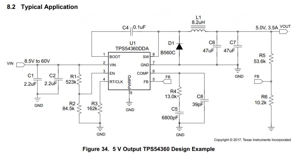 Cái sơ đồ trên lấy từ datasheet của linh kiện. Cũng chính trong datasheet đó, ở trang 31 và 32 đã đề cập đám linh kiện R4, C5, C8 để làm gì, tính theo công thức nào. Người hỏi đã đọc hết cái datasheet chưa ?