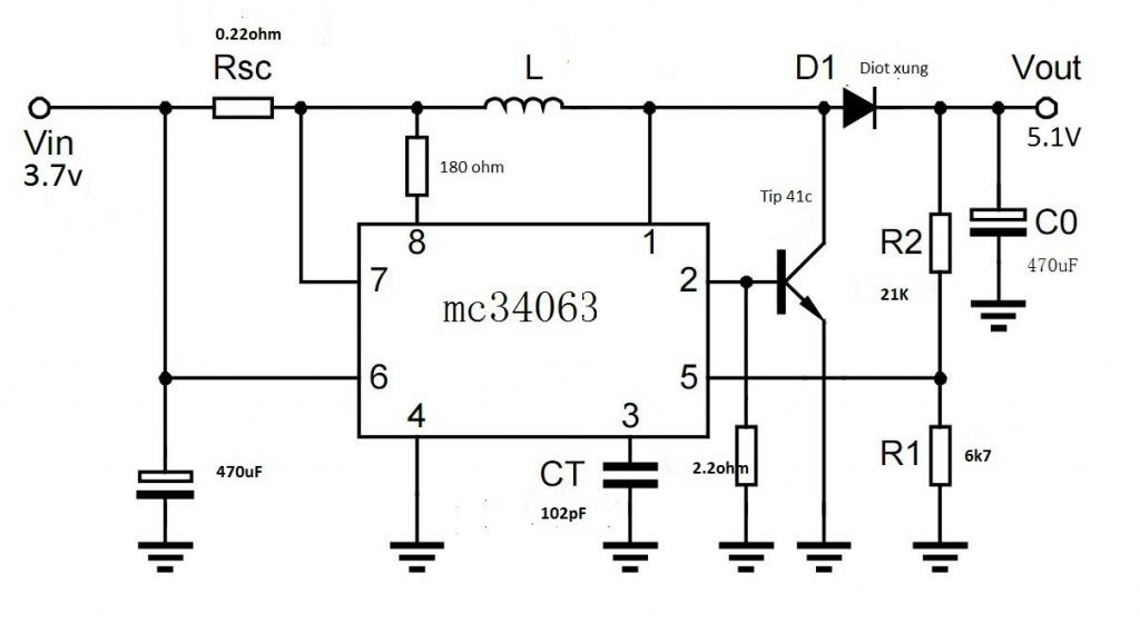 mặc dù dùng nguồn dải rông từ 3.7 đến 24v cho mc34063. Tôi dùng nó chạy với mach RX 2.4gh hoăc FM 72mhz . Ko quan trong hóa nó làm chi