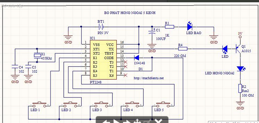 bạn nên dùng những IC khác hoặc MCU mã hóa/giải mã !Nguyên văn bởi thanhhaudt33 Xem bài viếtAnh queduong ơi!Hôm trước em có làm 1 mạch báo trộm bằng hồng ngoại,dùng 2 cặp thu thát pt2248/2249.Sơ đồ như hình dưới,ở mạch phát pt2248 em dùng chân K1,nút nhấn LED1 nối tắt và ở mạch thu pt2249 em dùng chân H1.Chúng phát hiện người qua lại rất tốt nhưng khổ nỗi cứ cách vài tiếng đồng hồ là lại báo động giả(ko có người mà mạch lại báo động).Vậy em xin hỏi anh có cách nào làm giảm hiện tượng báo động giả đó ko??