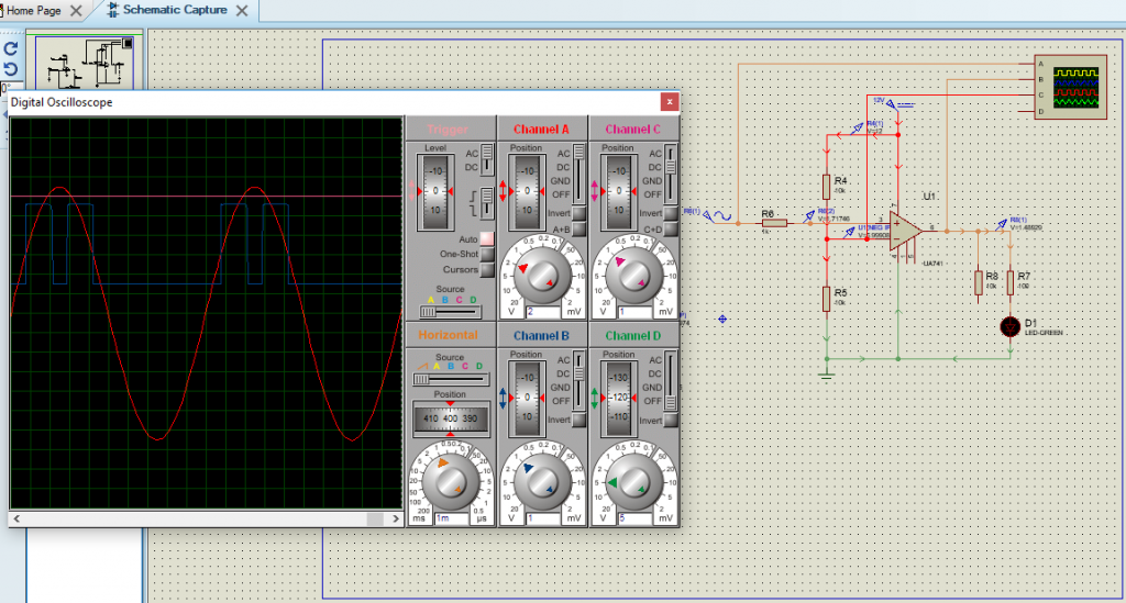 Xin chào mọi người, em sử dụng proteus để mô phỏng Opamp 741 dùng trong mạch so sánh, khi nâng điện áp V+ (Sine)>Vcc 1V thì đầu ra không đúng như mong muốn.