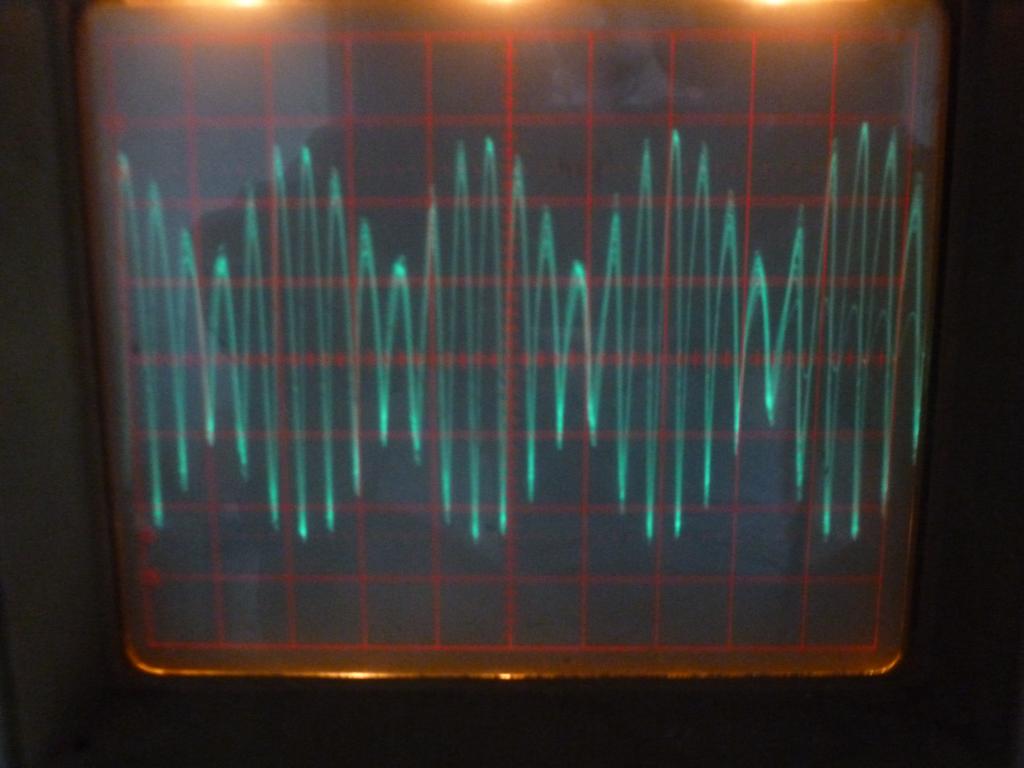Mấy tuần nay tôi tìm kiếm vị trí tần số cộng hưởng tối ưu nó biểu hiện ở hình ảnh sóng tại cuộn thứ cấp thấy được qua đầu dò ocilloscpe gắn dây đất và 1 đoạn ngắn vài cm đặt cách cuộn dây 1 khoảng an toàn trường hợp tôi đặt trên bàn cạnh chân cuộn dây vài tấc đả thu được sóng lên tới mấy trăm volt ( do không có tải) đó là những chùm sóng có biện độ giống như hình 3