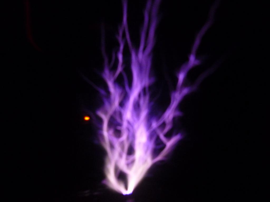 Các hính 4;5;6;7 thu được khi cuộn dây hoạt động ở chế độ sông suất tức thời >1Kw nhưng công suất bình quân chỉ 20 chục watt là đã phát được tia lủa 15cm rồi nhưng tia lủa này mãnh với tiếng rít chói tai .Khi cho duty dài hơn đạt công suất vài trăm watt sẽ cho chùm tia lủa dày hơn sáng hơn và tiếng rít trầm hơn dù không đổi tần số.
