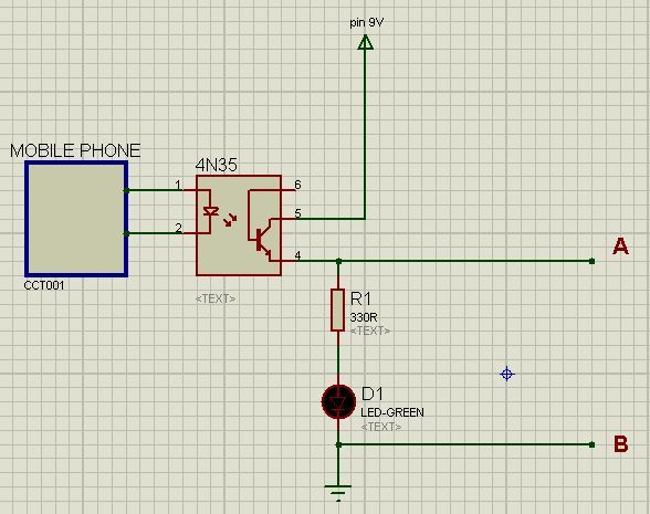 Mở 1 con Nokia 1110i >> thấy đường nguồn cấp tới 2 chân mô tơ rung bên trong điện thoại, khi ĐT rung thì đo thấy khoảng 3-4V, em câu 2 đường đó ra, cấp vào 2 chân vào của Opto Coupler 4N35 (pin1, 2), ở chân ra của 4N35 (chân 4) em sẽ lấy tín hiệu để đóng mạch ngoài – được nuôi bằng 1 viên vuông pin 9V.