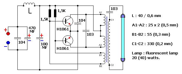 Ráp mạch như của Lanhuong cho hiệu quả cao lắm đấy bạn, loại mạch này mình làm nhiều rồi, ráp là chạy thôi, cân chỉnh điện trở và tụ để có ánh sáng mạnh nhất, không tạo ra tiếng rít và ít nóng sò. Trong các đèn tuýp của TQ hay Đài Loan người ta làm rất gọn nhưng hiệu quả rất cao, dùng ăcqui 6V nhưng có thể dùng được 2 bóng 20W. Đa phần người ta dùng transistor D882 không cần lắp tản nhiệt. Nếu bạn ráp không chạy thì tham khảo các mạch này. Bạn có thể tìm bộ nguồn máy tính hư để lấy lõi sắt pherit quấn cũng được nhưng số vòng dây thì ít hơn quấn trên lõi pherit tròn.