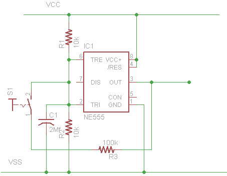 Có 1 nút nhấn, tác động mức thấp. Nhấn lần thứ nhất đèn sáng, nhấn lần thứ 2 đèn tắt. Hoặc hiểu theo cách này, cứ số lần nhấn là số lẻ thì đèn sáng, số chẵn là đèn tắt.