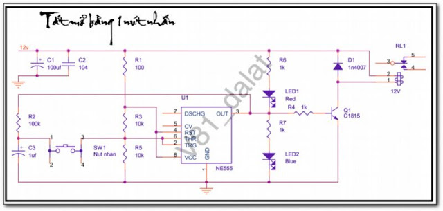 Nếu chỉ làm như mạch bác duongact thì nút nhấn sợ ko bền đâu bác. Nên thêm 1 con diot để tránh dòng tải qua nút nhấn như bác TLM có nói ở #16