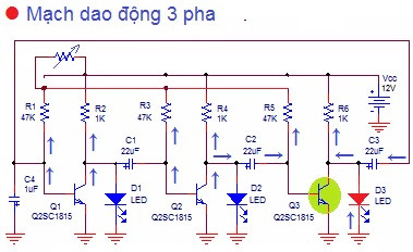 Mạch dao động đa hài 3 transistor có điều chỉnh tần số