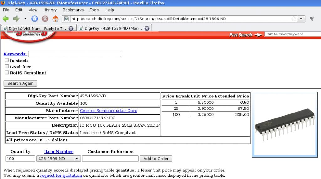 Trước giờ chỉ thấy có một hãng sản xuất linh kiện điện tử duy nhất là Microchip chịu khó tổ chức một hệ thống bán lẻ thông qua MicrochipDirect để cung cấp linh kiện điện tử số lượng nhỏ cho người sử dụng. Các nhà cung cấp có khả năng bán lẻ phải có vốn rất mạnh và thị trường khá lớn, như Digikey, Mouser, ... Do đó giấc mơ về một nhà cung cấp linh kiện điện tử có khả năng đáp ứng được nhu cầu của anh em nghiên cứu (cần chục con đổ lại) chỉ là viễn vông. Trừ phi thị trường VN đủ lớn => các doanh nghiệp có thể xem xét việc tổ chức kho hàng tại VN => life has killed the dream I dreamed.