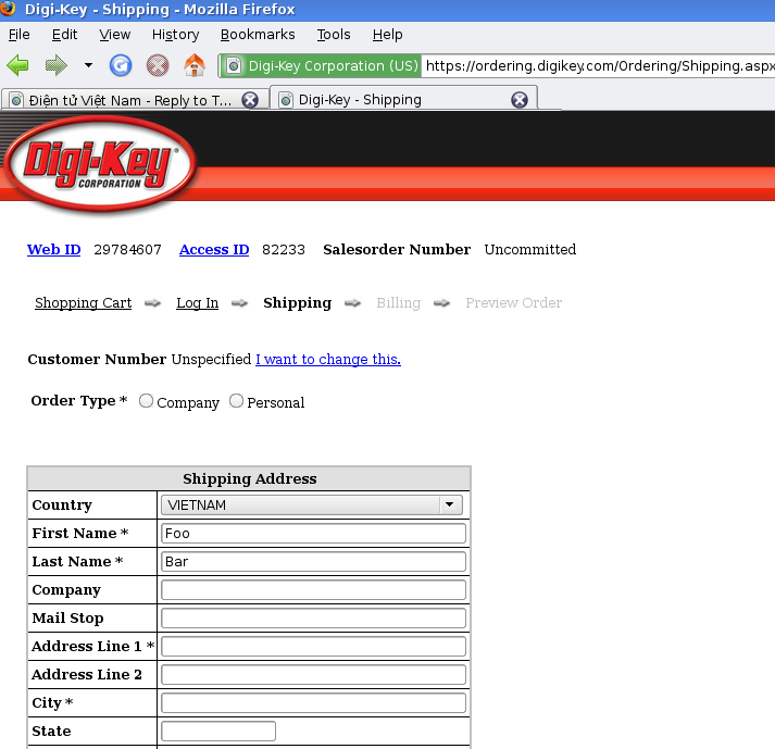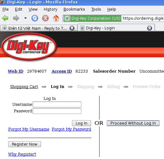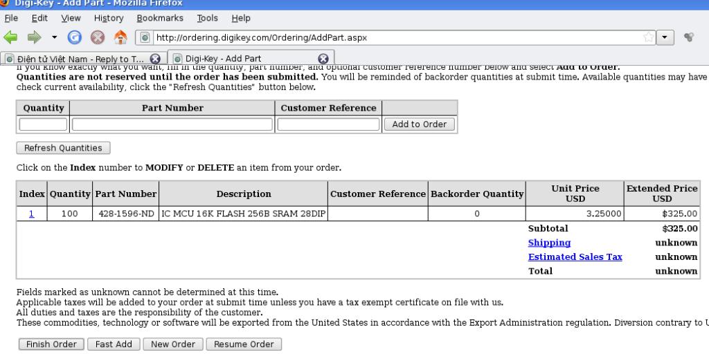 Cụ thể: mua linh kiện từ Digikey (từ Mouser, AVnet, ... cũng tương tự, quy trình giống nhau tới 90%)