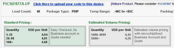 Giá PIC16F877A là 4,41$ cho đơn hàng 1000-4999
