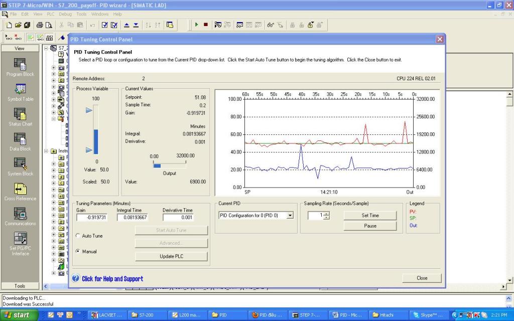 - Tất nhiên thông số PID chưa tối ưu nên mới bị thế (tôi tự hiệu chỉnh theo kinh nghiệm và dùng auto-tune của S7-200)