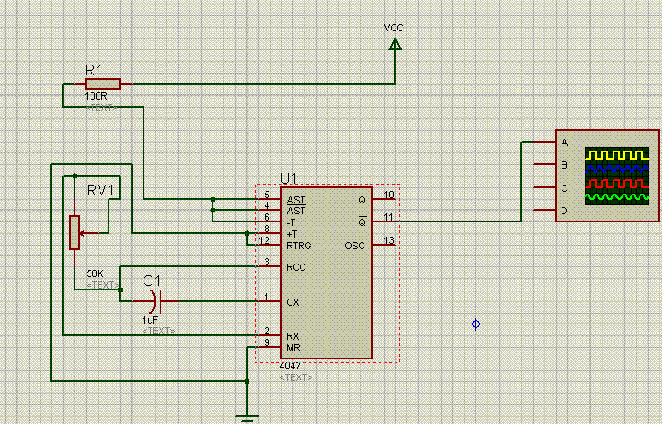 con 4047 của bạn chọn ko có thư viện mô phỏng, bạn chọn con nào mà phía trên nó lúc chọn linh kiện có ghi "Schematic model [***.MDF]" mới mô phỏng đc