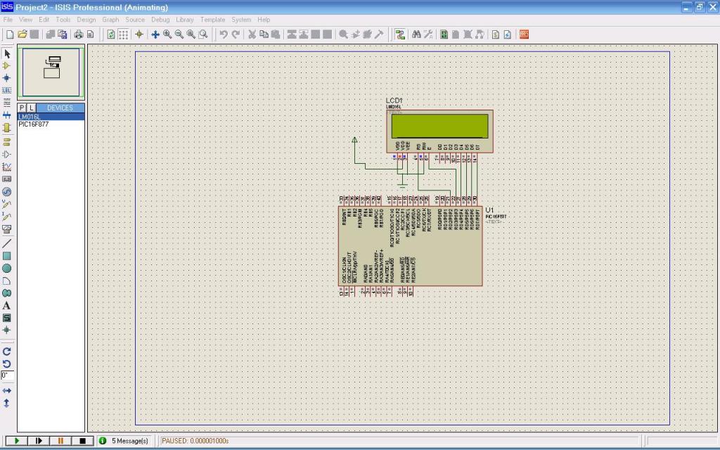 hiện tượng là: khi debug thì LCD chỉ hiện lên màu sáng mà không hiện lên chữ, đây là 1 ví dụ đơn giản em thử làm trên proteus