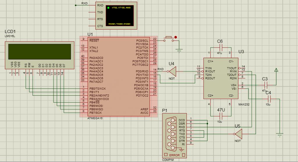 Đề tài của e là: Nhận một chuổi ký tự("Hello word") từ cổng COM RS232 lưu vào bộ nhớ eeprom của AVR, sau đó sử dụng một nút nhấn thực hiện lênh đọc chuỗi ký tự đó từ eeprom ra LCD. E mới viết được phần khung: