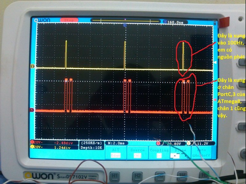 Cụ thể thế này: em cần tạo xung điều khiển trễ so với một xung cho trước một khoảng thời gian, em viết code để nạp vào ATmega8 như sau: