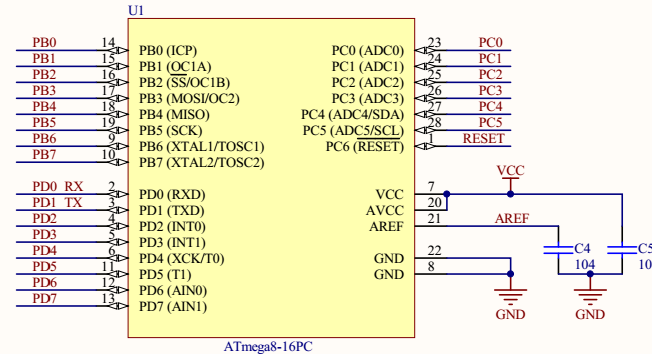 Chân AREF mình cho qua tụ 104 xuống GND.
