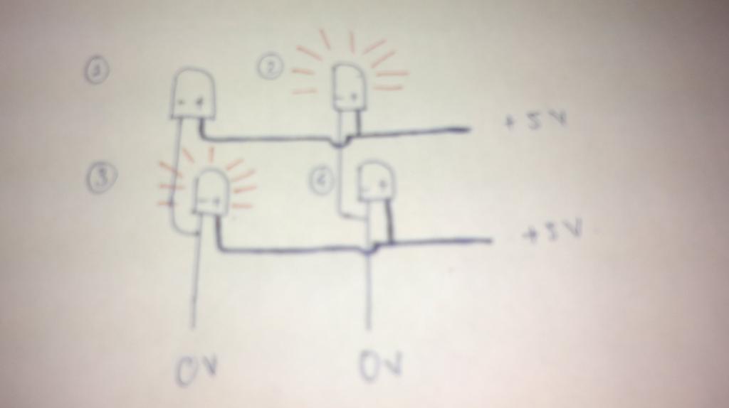 mình muốn LED 2 và 3 sáng, 1 và 4 tắt. Để 2 và 3 sáng thì phải cấp điện như hình, nhưng nếu vậy thì 1 và 4 cũng sẽ đồng thời sáng luôn. và cụ thể hơn là 2 lớp nếu có bóng nào sáng thì 2 lớp đó phải sáng giống nhau.
