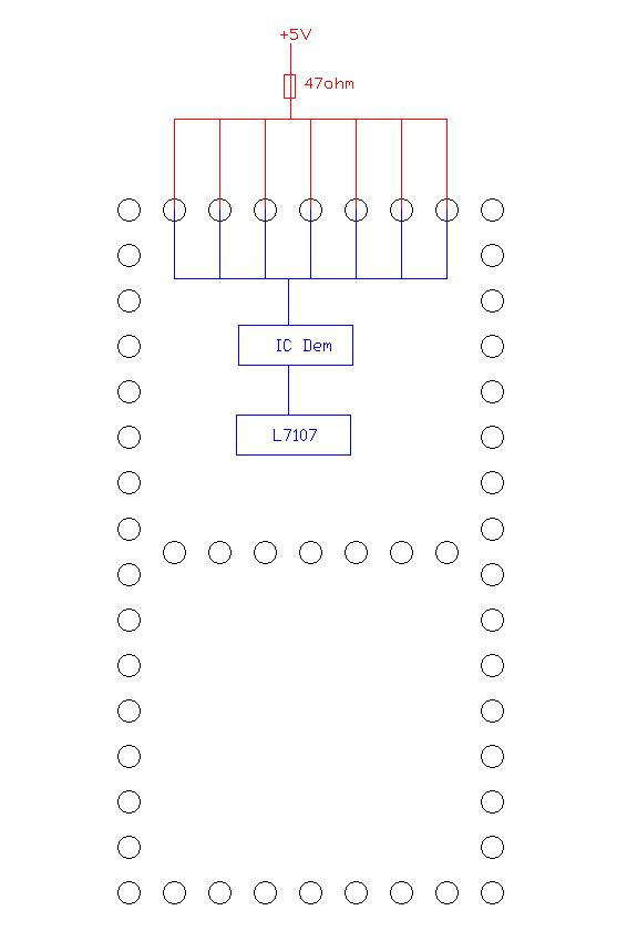 8 bóng Led đỏ loại 5mm đấu song song với nhau qua điện trở 47ohm về nguồn +5V