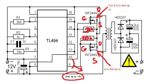 To bboyminh: Mình vẫn lắp theo sơ đồ này mà, chỉ thay đổi 2 con trở 470 ôm cho chân S của Mosfet thôi.